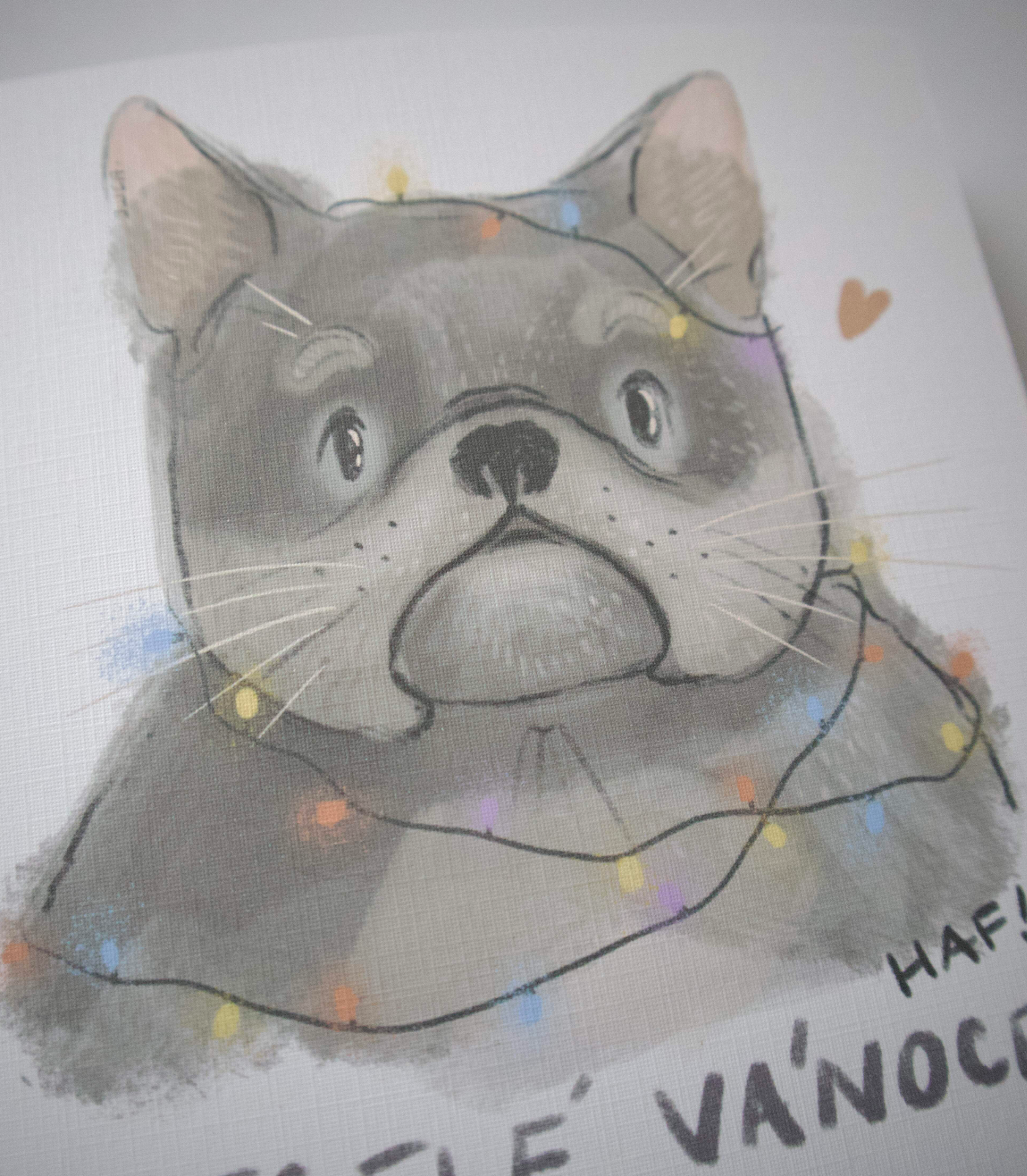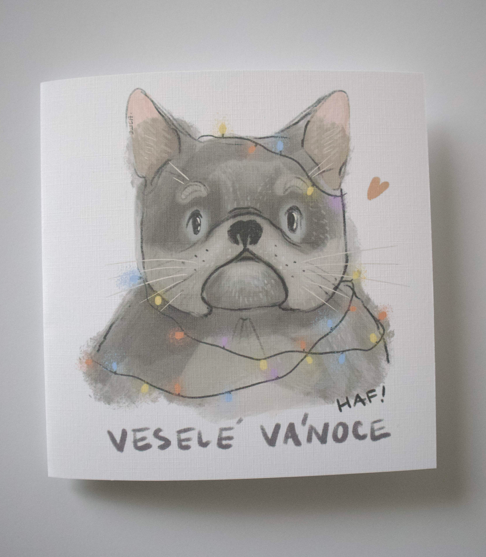 Ilustrované přáníčko "Buldoček" / 14,3 x 14,3 cm