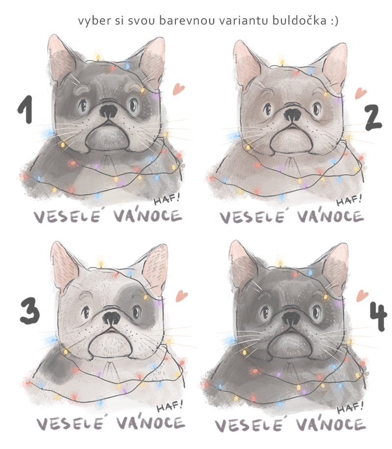 Vyberte si variantu barvy buldočka a napiš mi to k objednávce do poznámky: