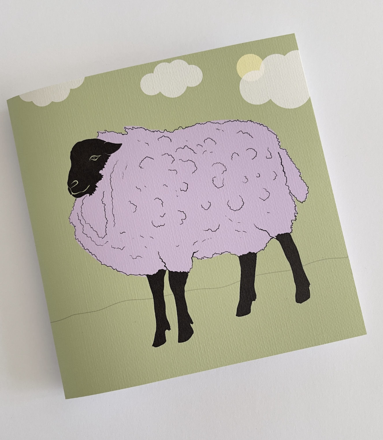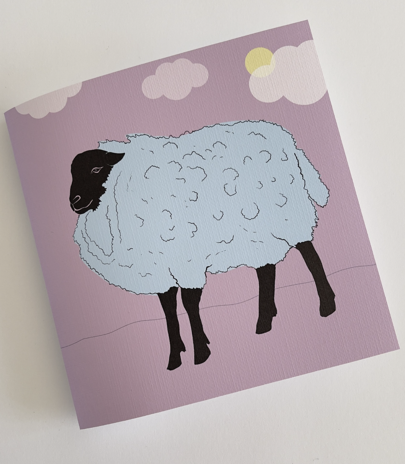 Ilustrované přáníčko "OWCA" s ovečkou / 14,3 x 14,3 cm.
