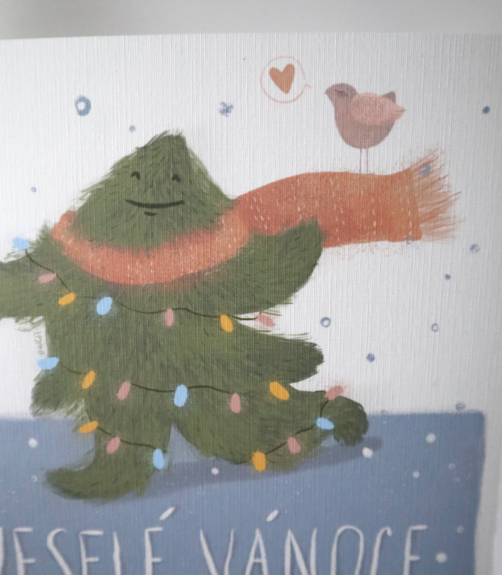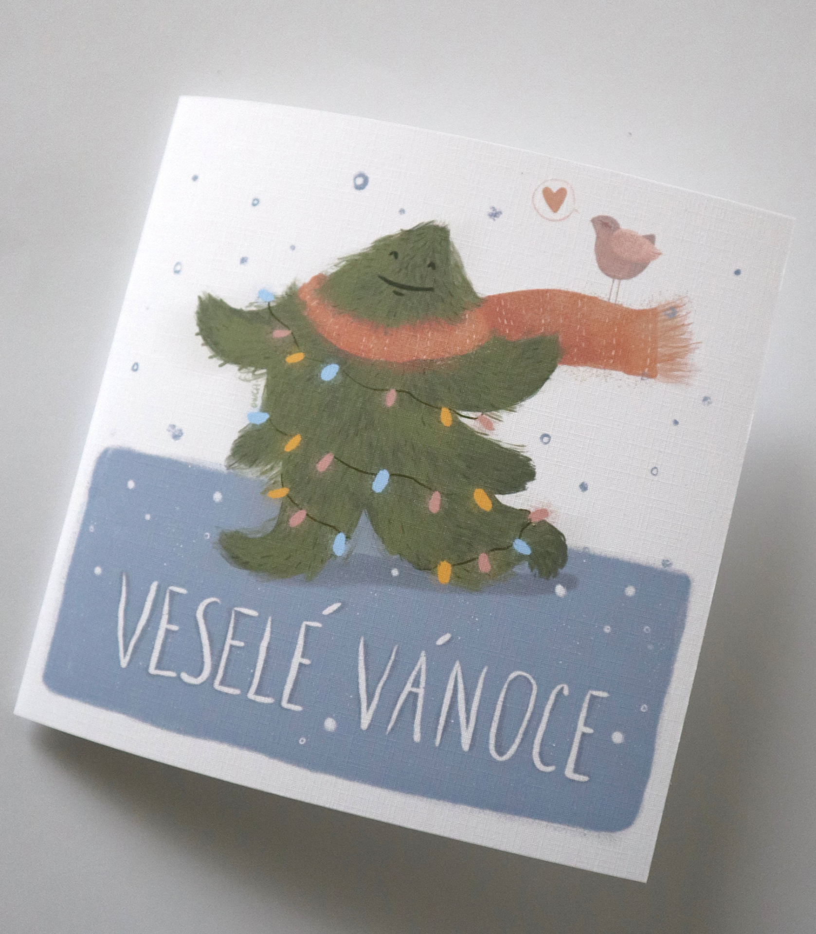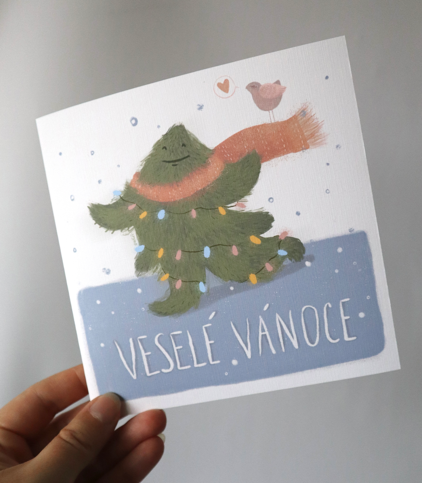 Ilustrované přáníčko "Stromeček a ptáček" / 14,3 x 14,3 cm