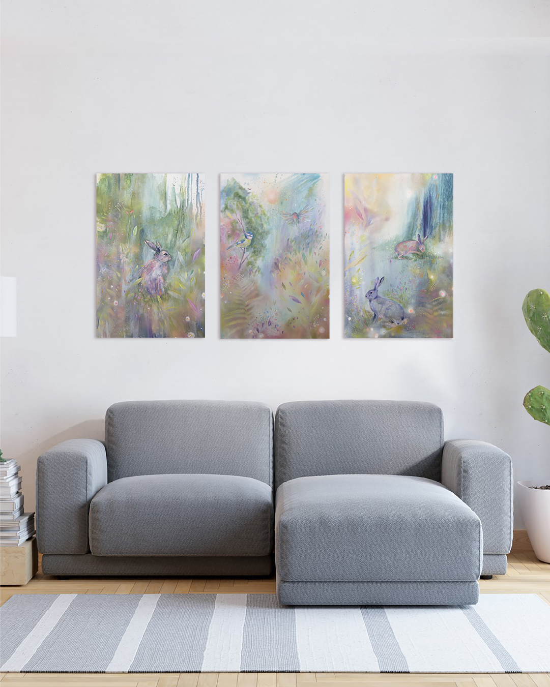 Kombinovaná technika akryl a akrylový sprej, podklady je malovaný v dešti. Základ je tvořen v plenéru s pomocí přírodnin kapradin, rostlin a malby v dešti. Detaily jsou dodělávané v ateliéru. technika je kombinovaná a velmi zajímavá.