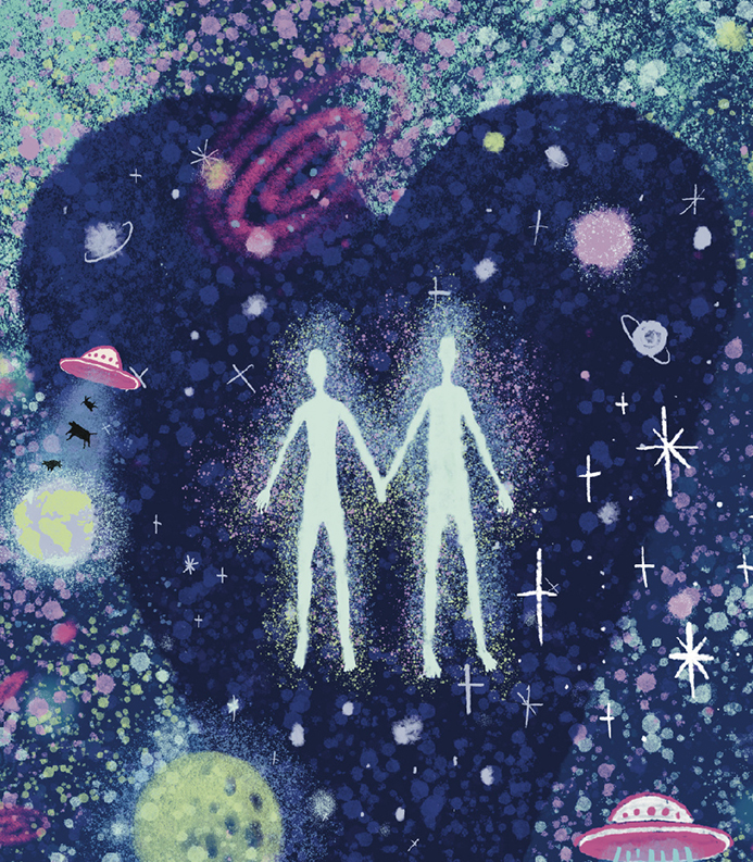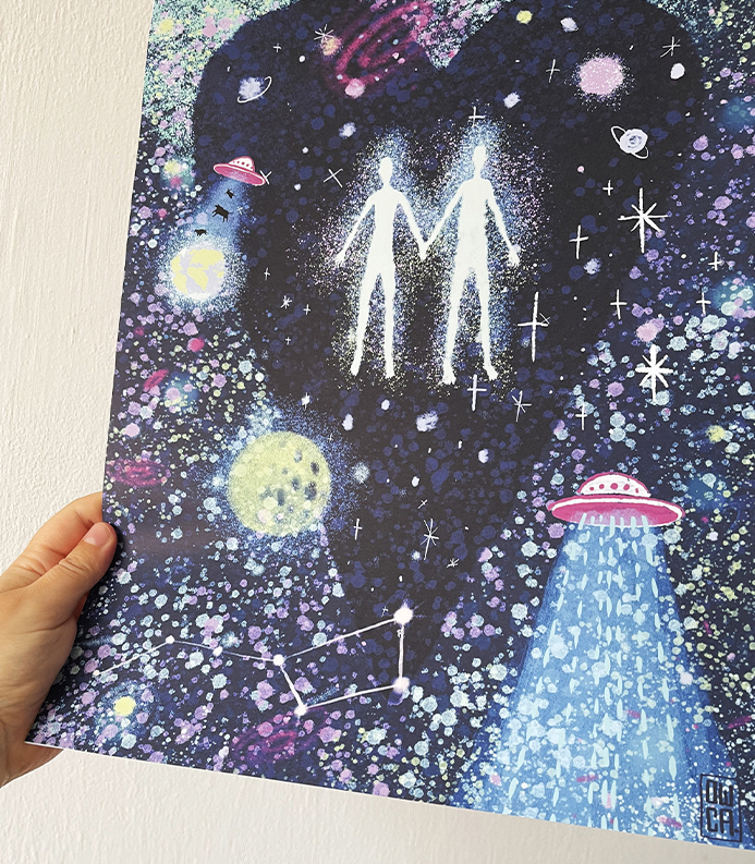 Tištěná reprodukce "VESMÍRNÉ SPOJENÍ" na hladký tvrdý klasický papír 300 g.