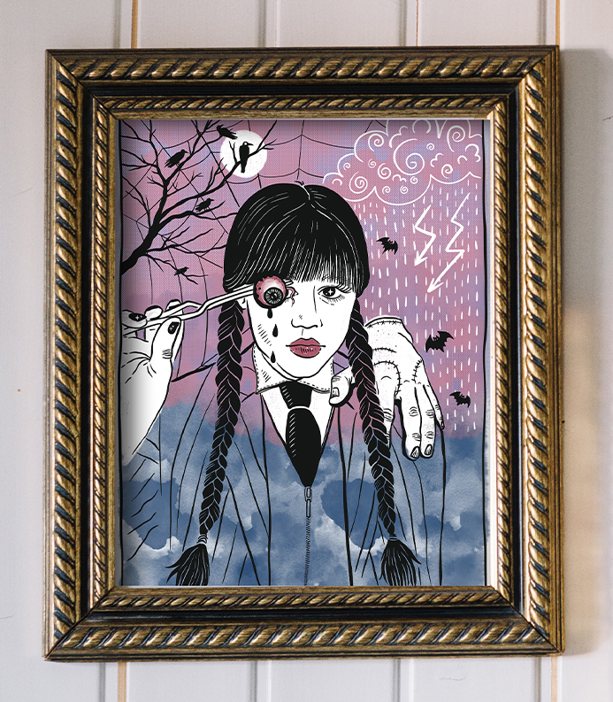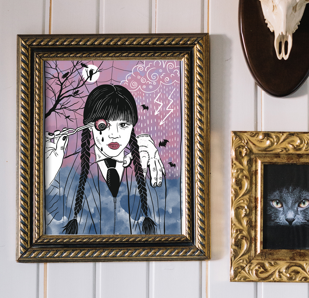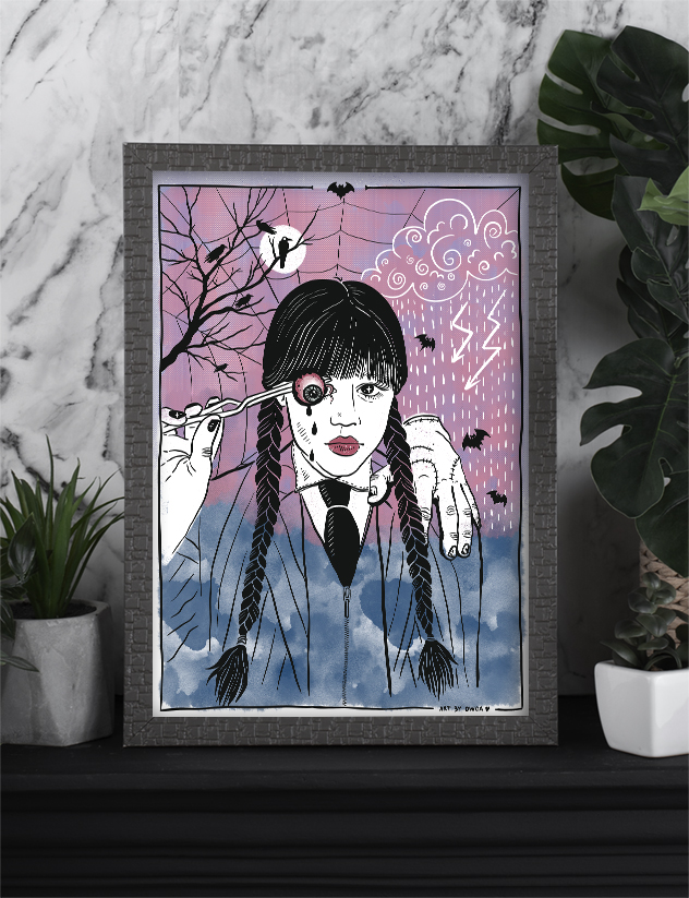 Tištěná ilustrace "WEDNESDAY" na tvrdý matný klasický papír 300 g.